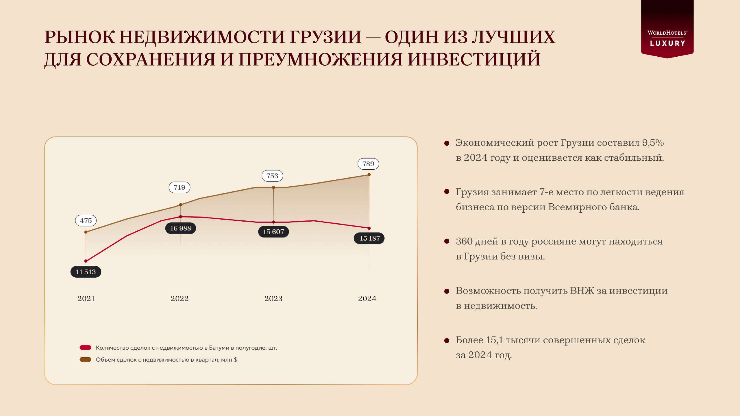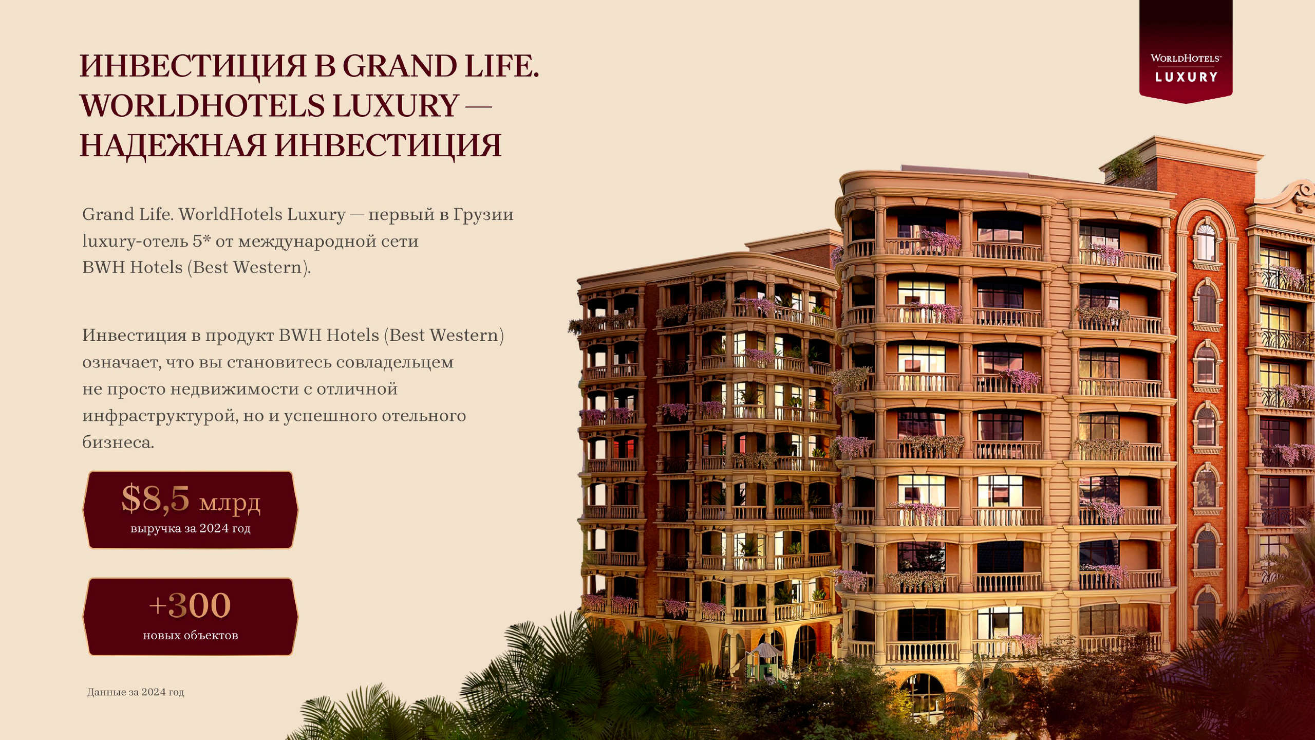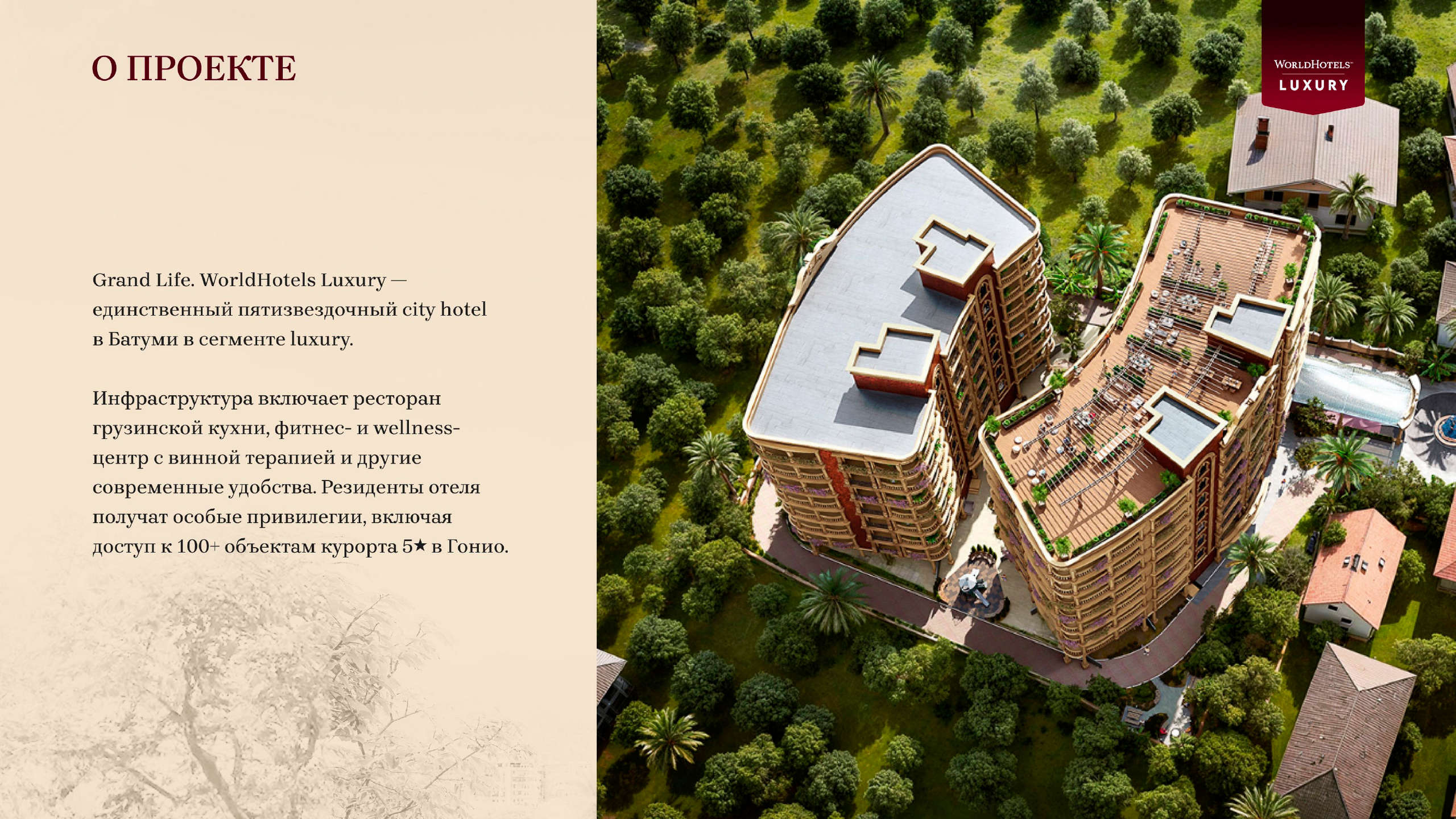 Оставьте заявку на сайте или напишите нам в WhatsApp — вышлем полное досье по Grand Life. WorldHotels Luxury в Батуми.
