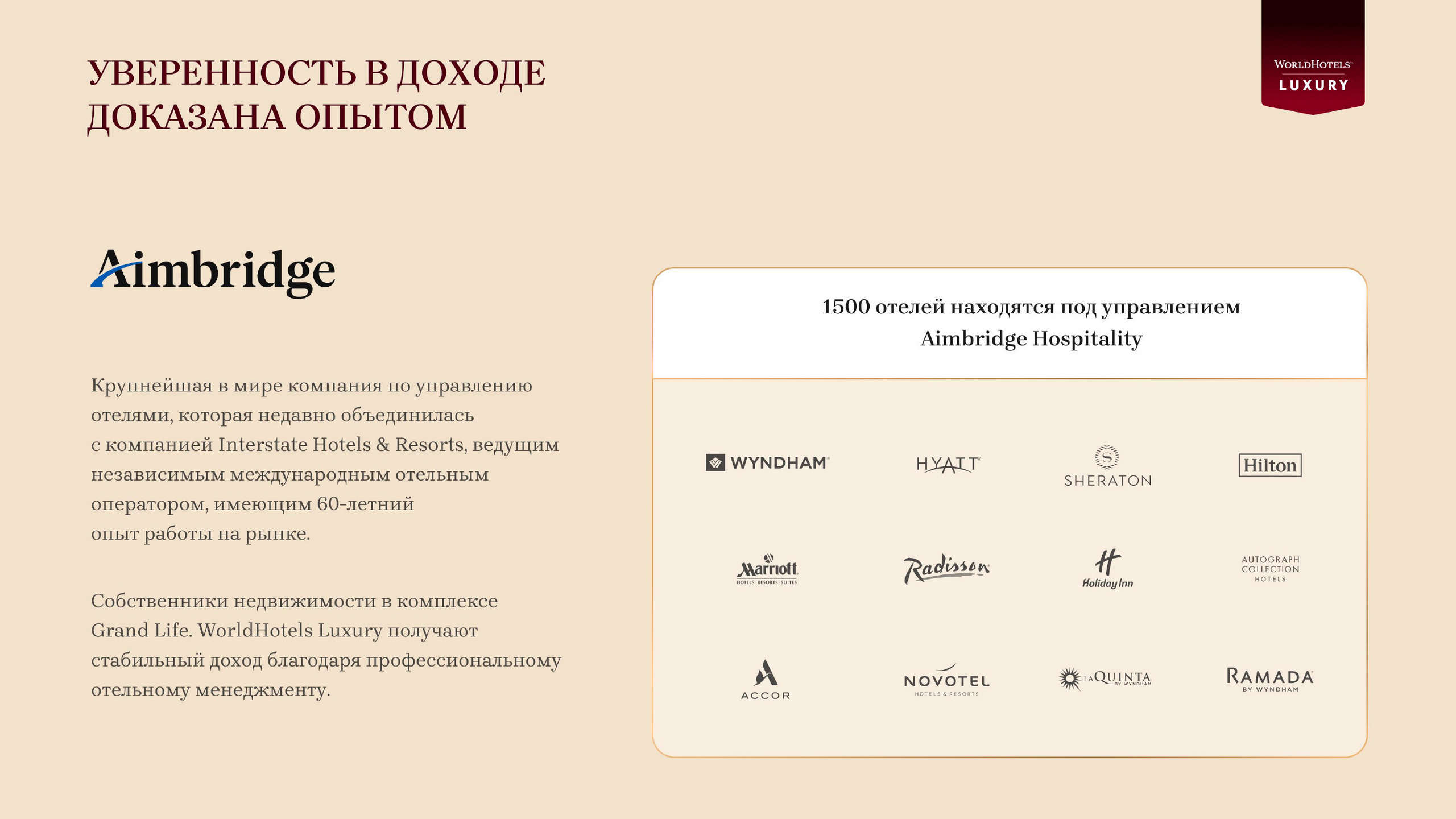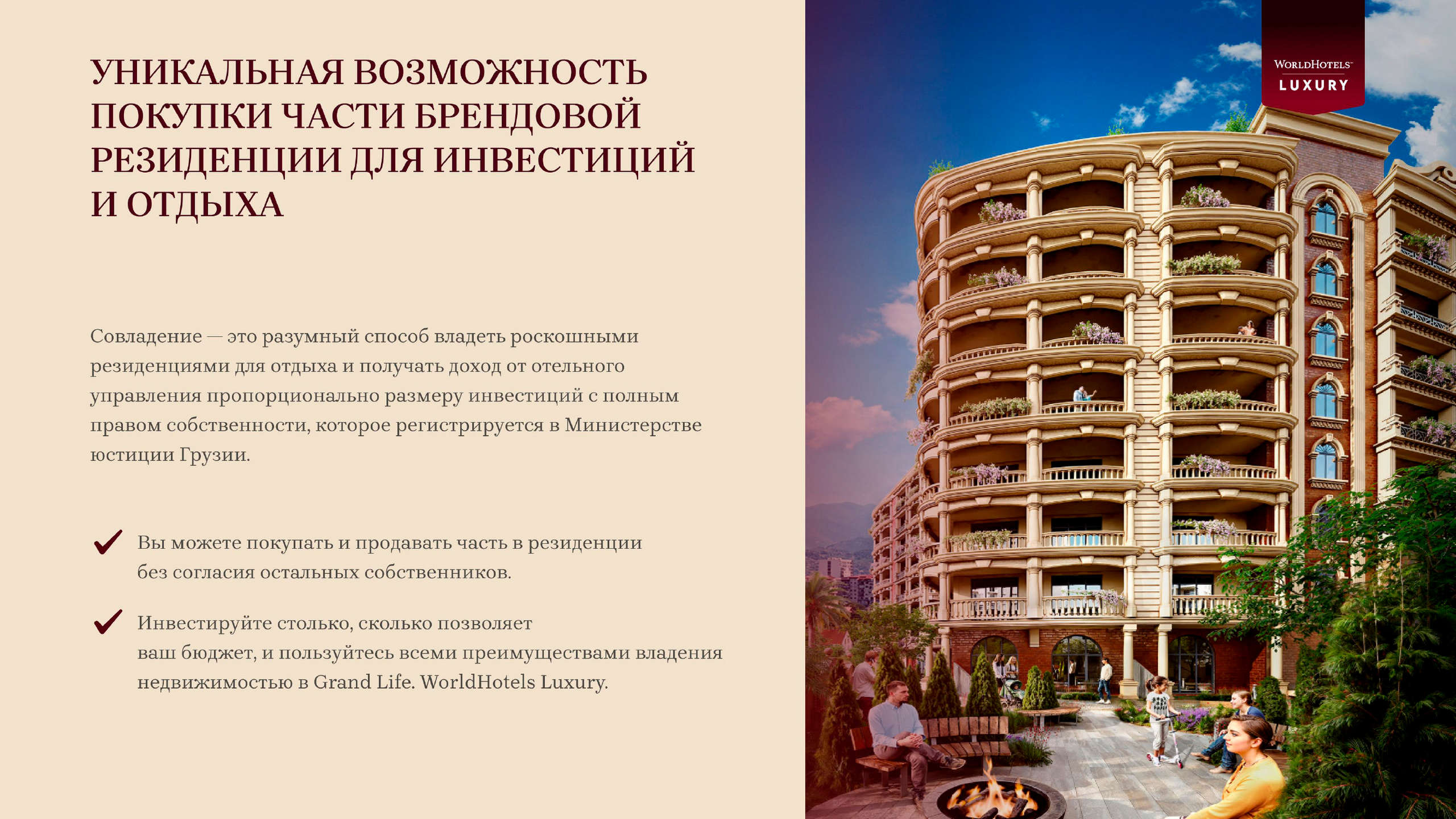 Grand Life изначально задуман как инвестиционный продукт с управлением через международного оператора и глобальную систему бронирования BWH Hotels.